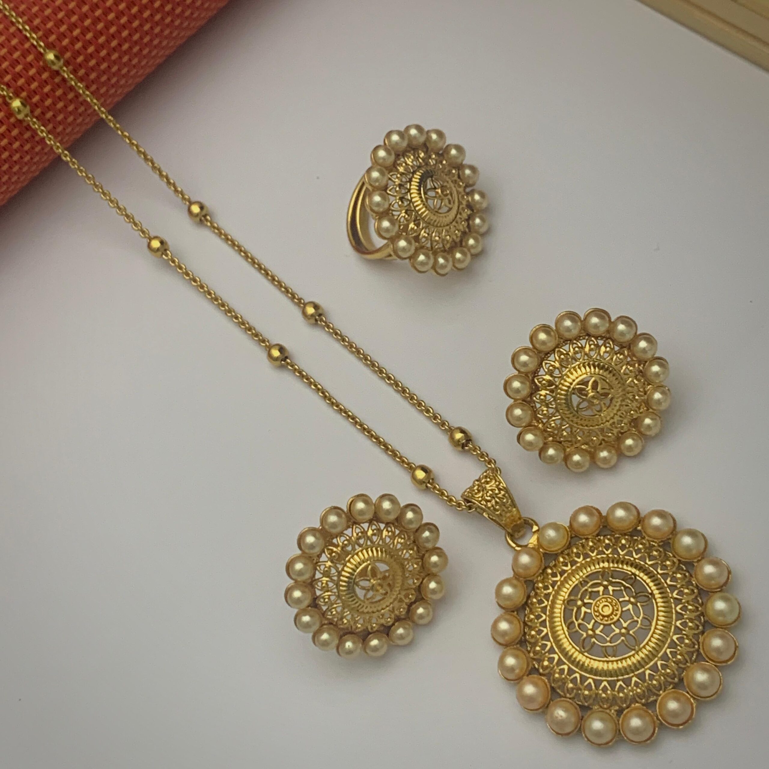ইন্ডিয়ান জয়পুরি গোল্ড প্লেটেড পেন্ডেন্ট কম্বো সেট।